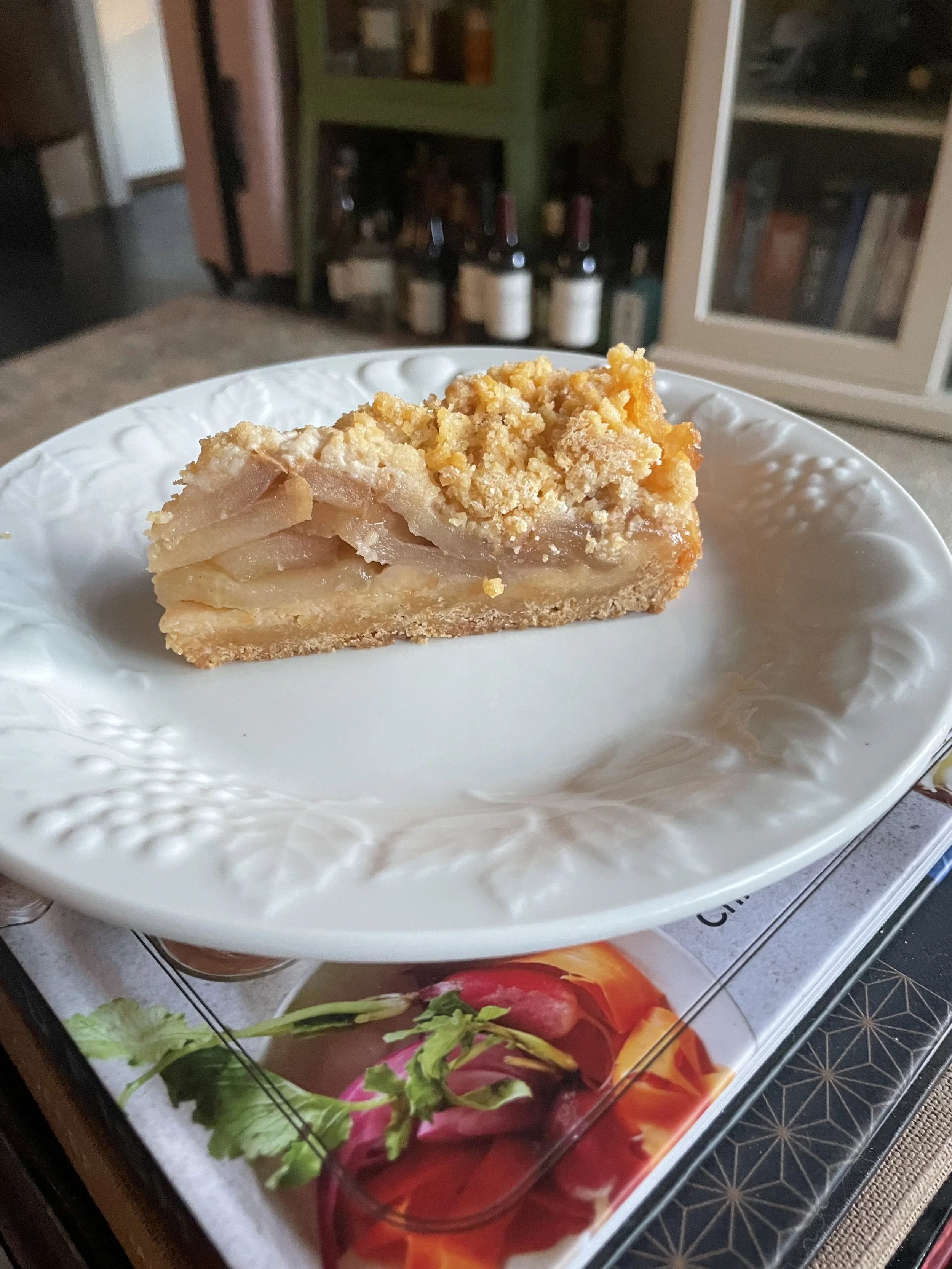 Overall, it was fairly easy to make, way easier than an apple pie and more unique than a crisp, I also loved that the crust and crumb topping have the same base, with egg yolks being what distinguished the two. I also liked that you leave the skin on the apples and cook them on the stove a bit to soften them before baking.