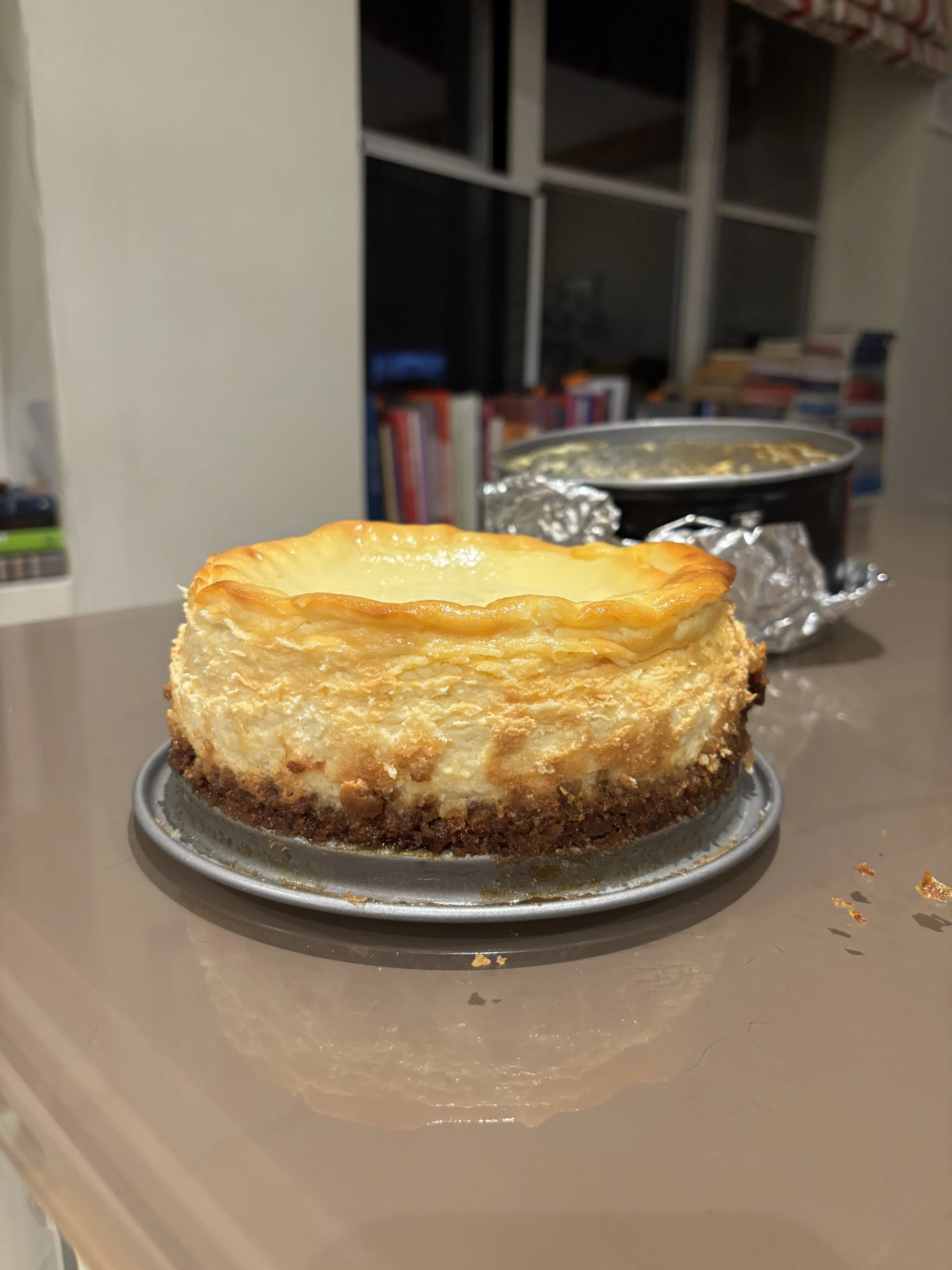 Every year growing up, my mom would make my dad a cheesecake on his birthday. Not just any cheesecake, but what she called “heavenly cheesecake.” After enjoying this many times, I suspect the name is because it has an insane amount of cream cheese and is, as my dad says, “DG” (aka, damn good).